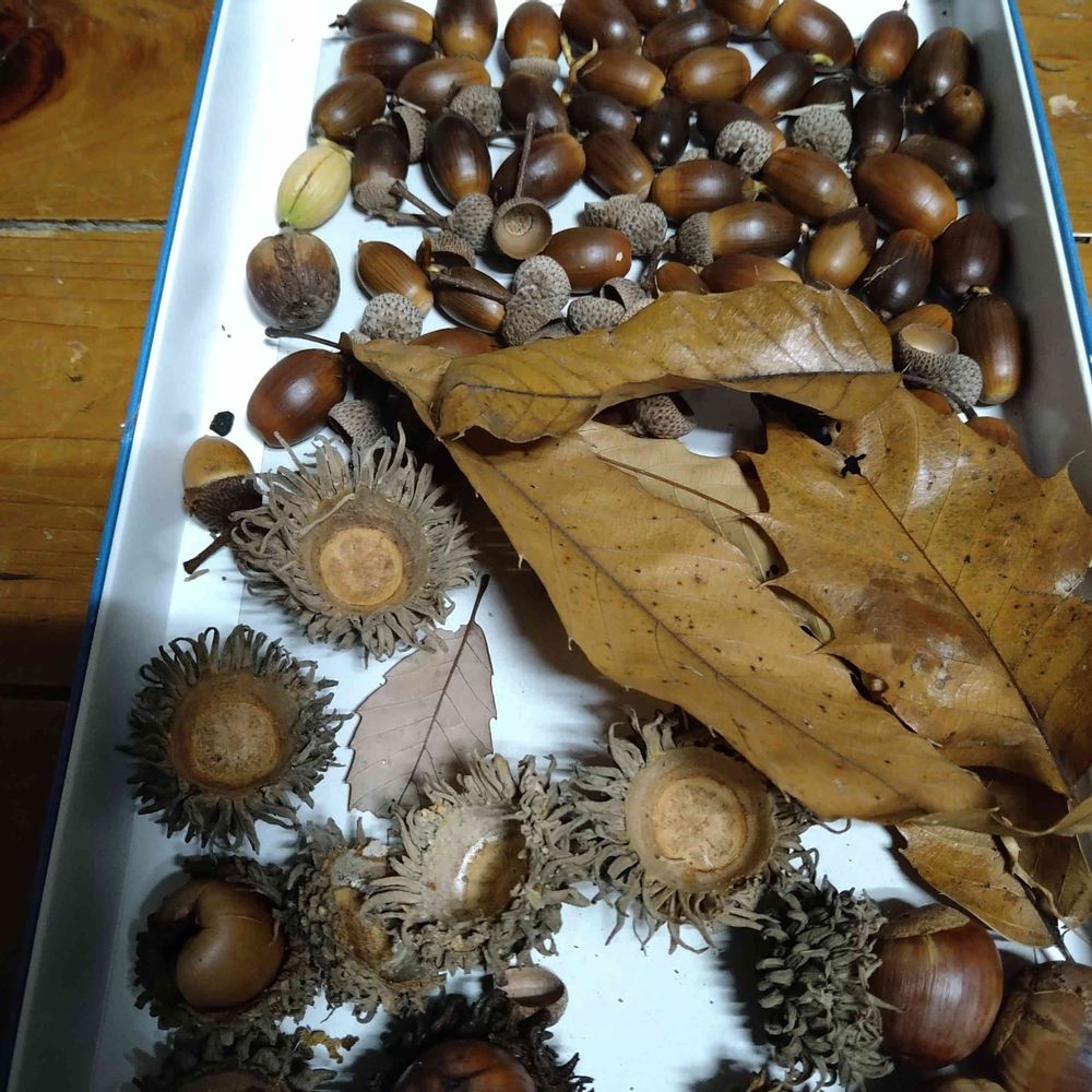 クヌギやいつも見かけるどんぐりはアクが強く渋いらしい…😱アク抜きをすると食べられない事もない…みたい。形がコロンとしていて美味しそうと想像〜クヌギ…(笑)