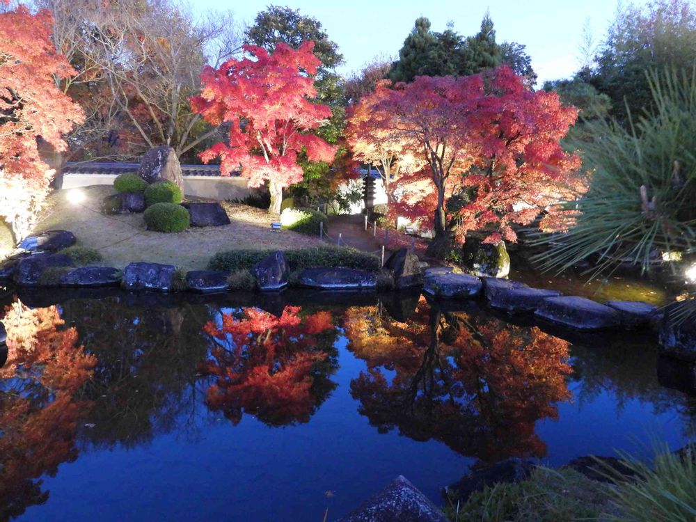 明るい内にお庭を堪能段々に暗くなりいつの間にかライトに照らし出された樹木が浮かび上がり昼間とは又違った趣きに大満足で後にしました.🎶( ◠‿◠ )