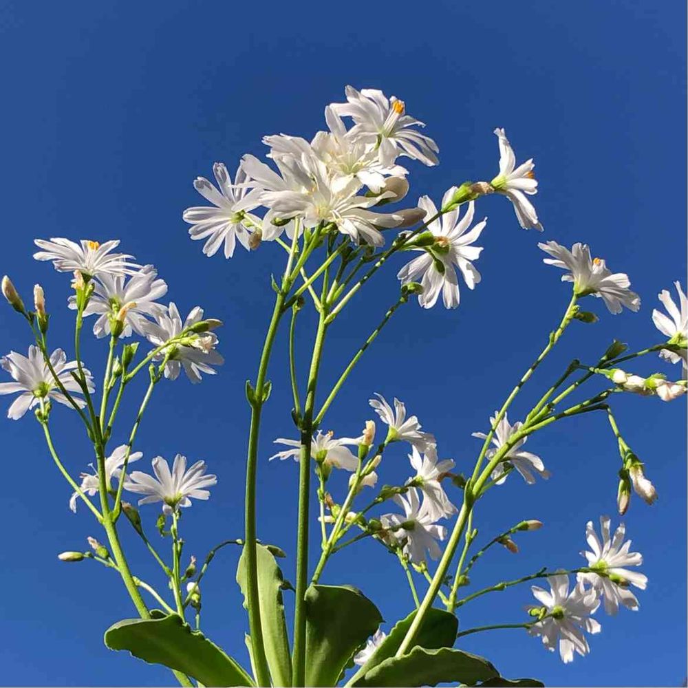 先日迎えた白いレウィシアを青空と撮ってみました。