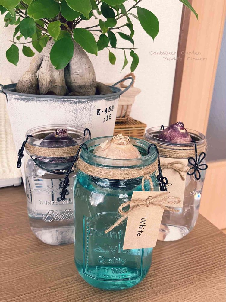 ヒヤシンスの水耕栽培始めました😊💜🤍💖