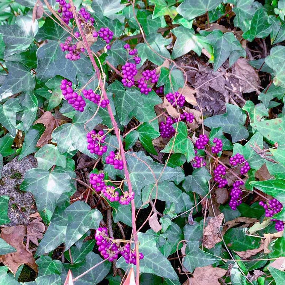 ヘデラさんの葉っぱに、ムラサキシキブ💟さんが映えるでしょ☝️