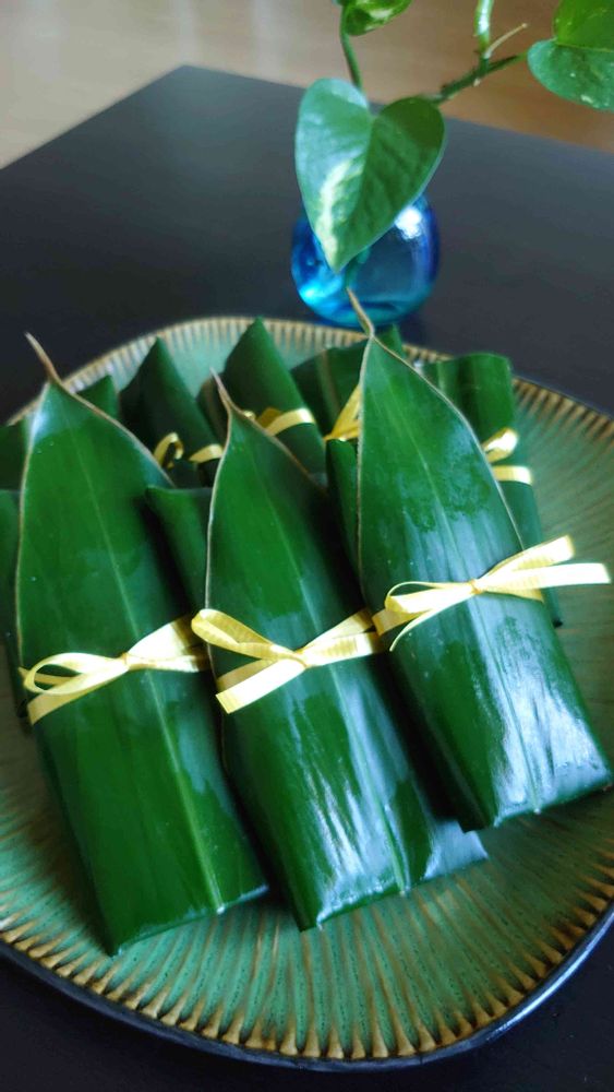 そうですね。ちまきみたいですよね。その土地土地で使う葉っぱが違ってきて面白いですね。これは沖縄のムーチーですが、パラオではタピオカやタロイモの餅をくるむのにティリーフやビンロウジュの木の皮がよく使われます。いずれも殺菌作用があると言われますね。🌿