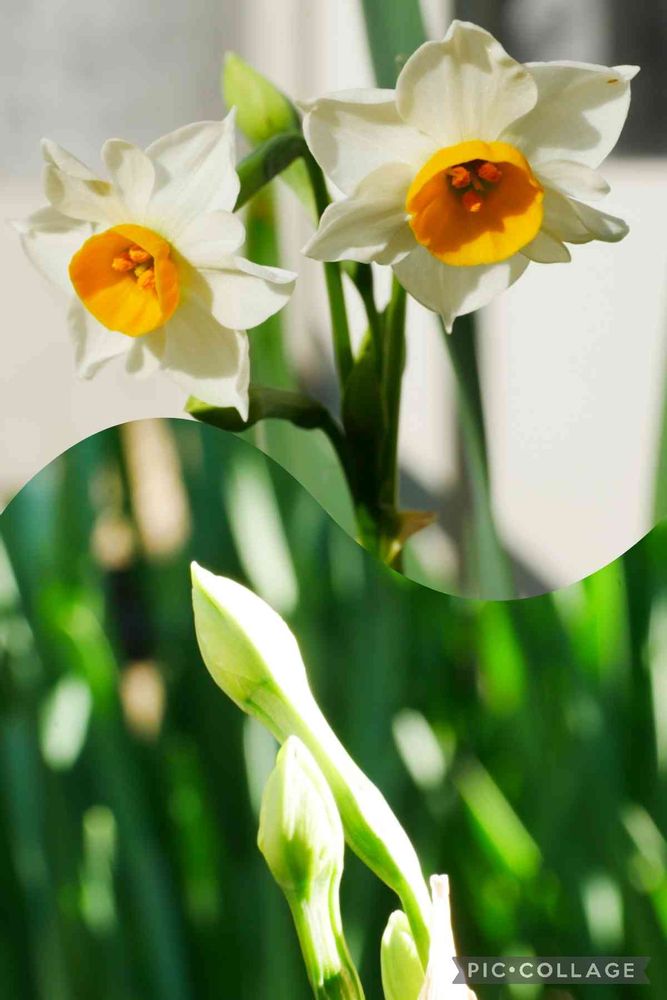 家の5種類のスイセンの一番乗り、いつも通りニホンズイセン(上)が雨の中、1輪咲いてきたと家の中で見ていたら、2日くらいで5,6輪になり、多分これから一気に沢山咲いてくると思います\(^o^)/