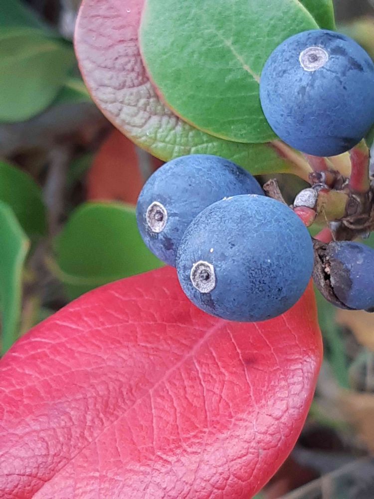 ありがとうございます。紅葉が黒紫の実を引き立てていました。