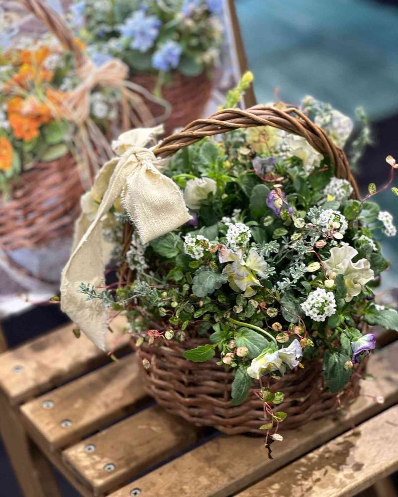 たくさんの花材がこんなに可愛いカゴに入る不思議💕
