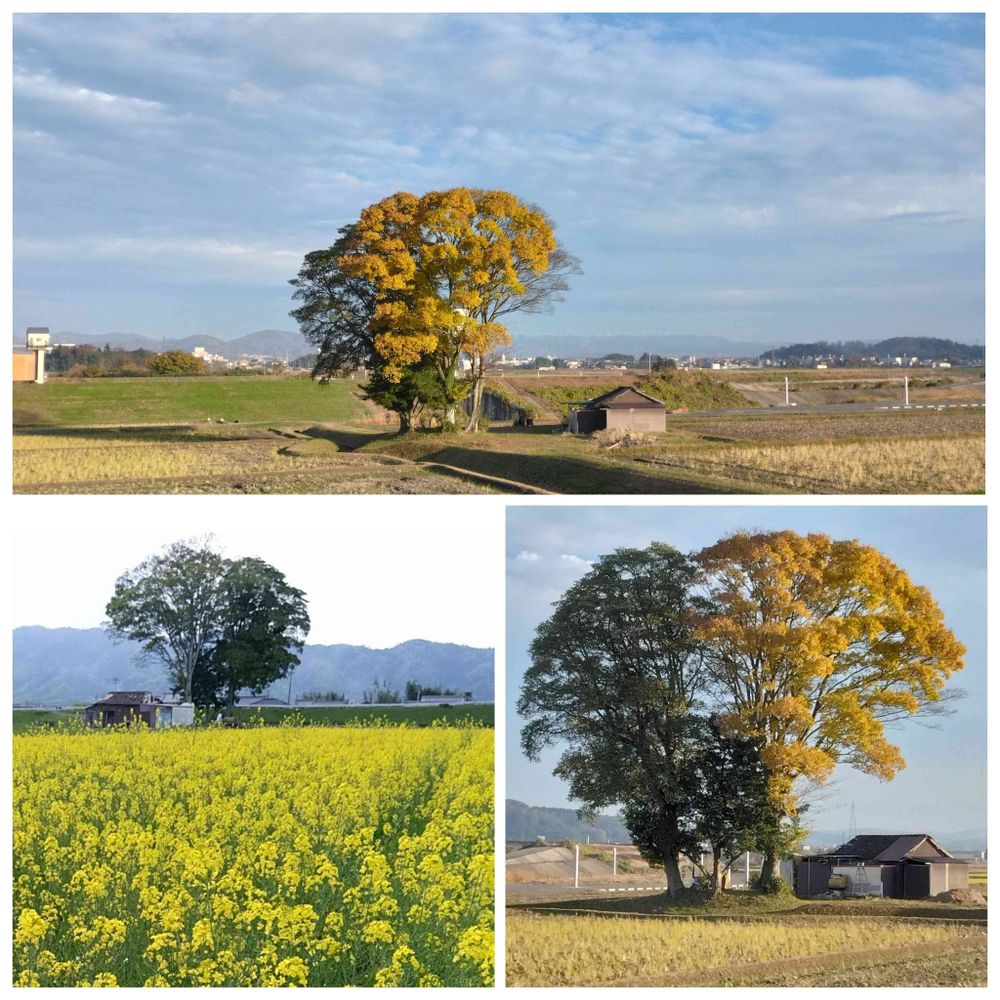 紅葉して黄色い木と対象の🌳のpicが素敵ですね。