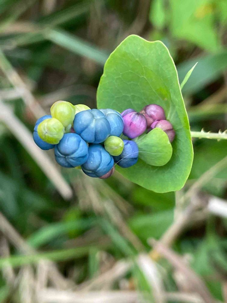 そして、イシミカワの青や紫の多肉化した萼は鳥にとってご馳走ですね。その中の実は硬くて、便の中にそのまんま出ていく上手い仕掛けになっています🤭