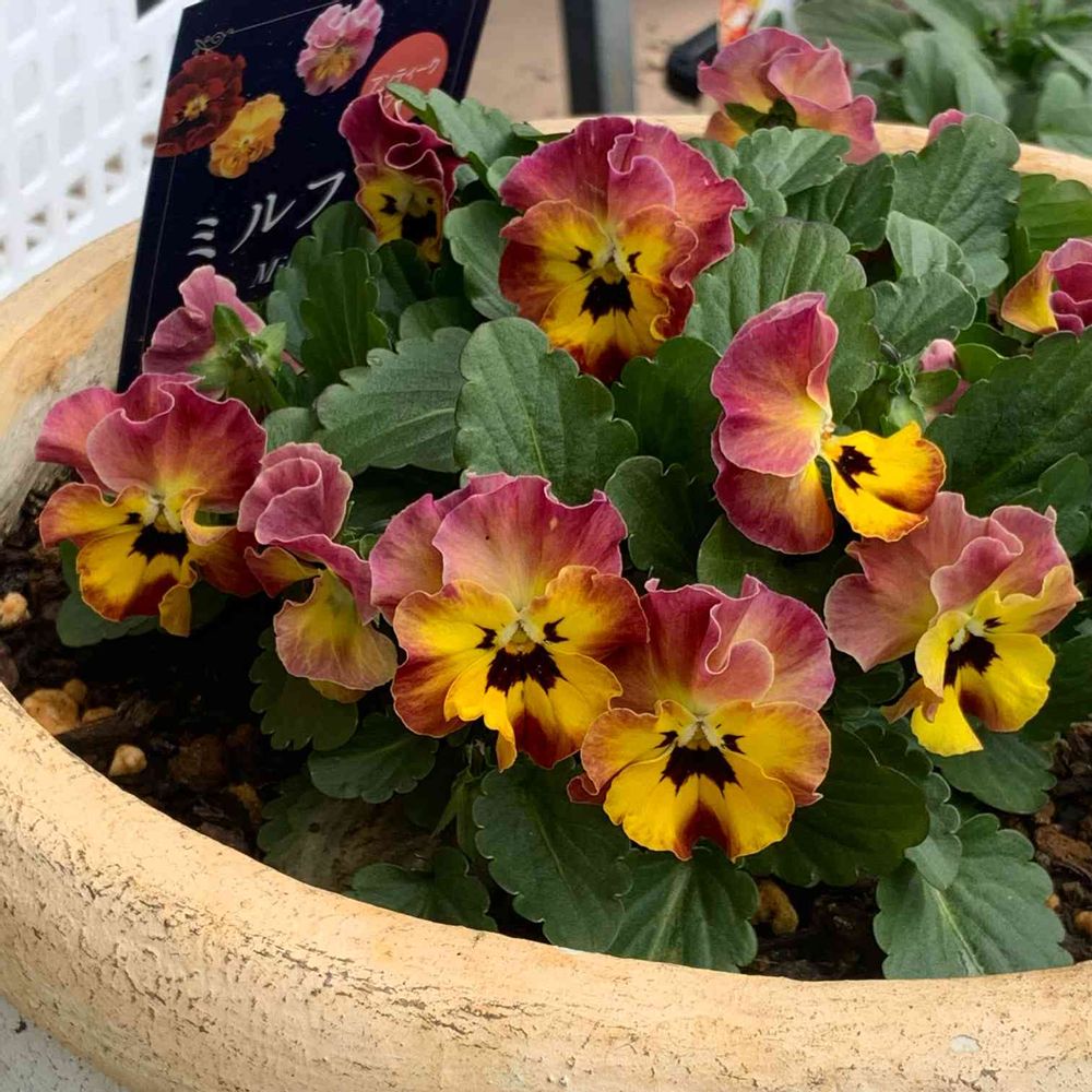 自分で購入したパンジー、ビオラは青や紫系が多いので一際目立ちます😊