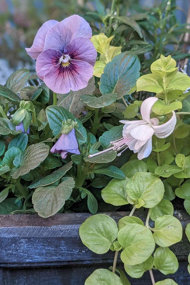 庭人さんビオラと、フクシアプーニーさん。季節感分からなくなる組み合わせですが、どちらも美しい✨