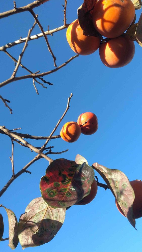 いえいえ 越して来る前からあった家の背高の柿の木は採ってどうする…ということは出来ません 落ちているのをハナのお土産に…それで滑っちゃった訳ですが😭… あとは鳥さんの食べ残し…