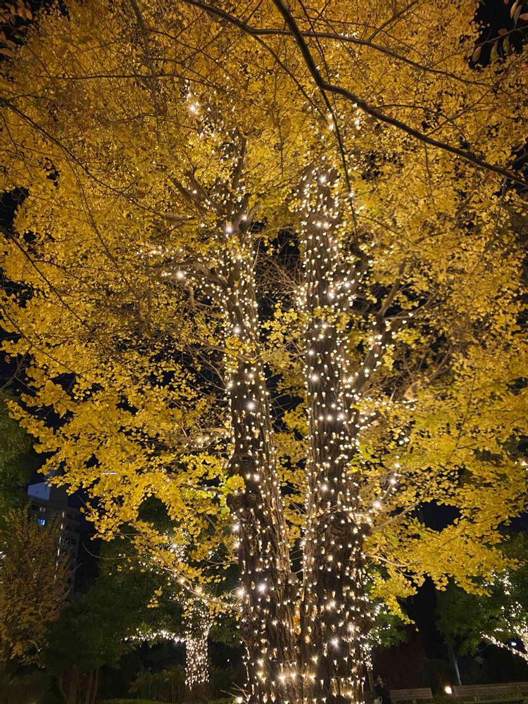 散策中、とても大きな銀杏の木のイルミネーションに圧倒されました👀☆