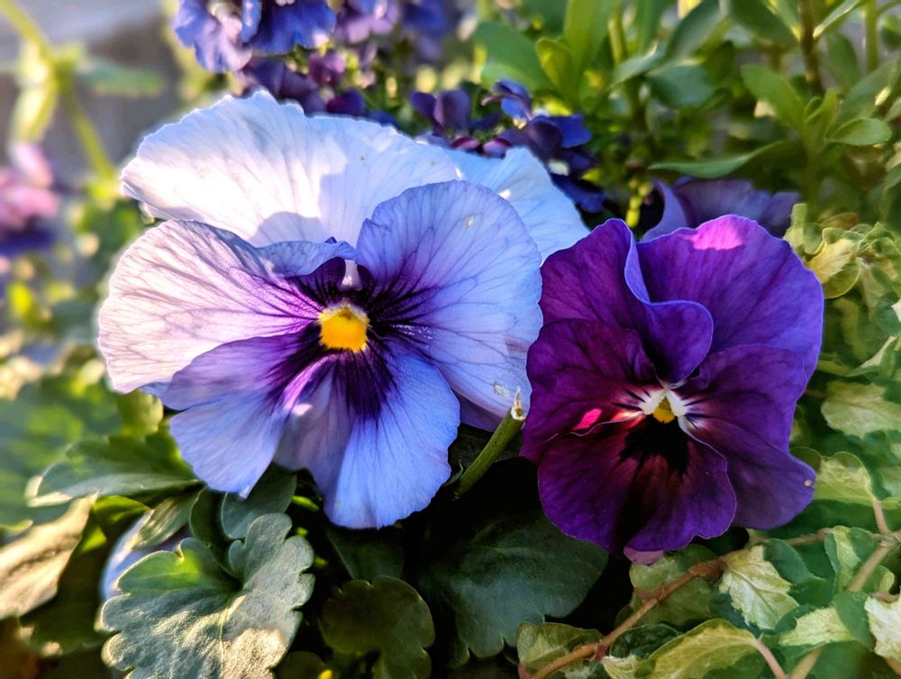 パンジーインスパイアプラスブルーブロッチ💙とこぼれ種咲きビオラ💜