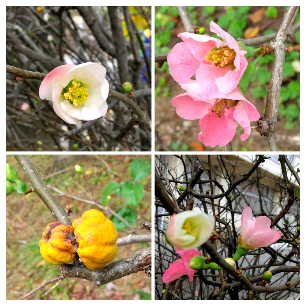 最初は、ボケのお花だけ咲いているのを見つけて、パチリ🤳しました。