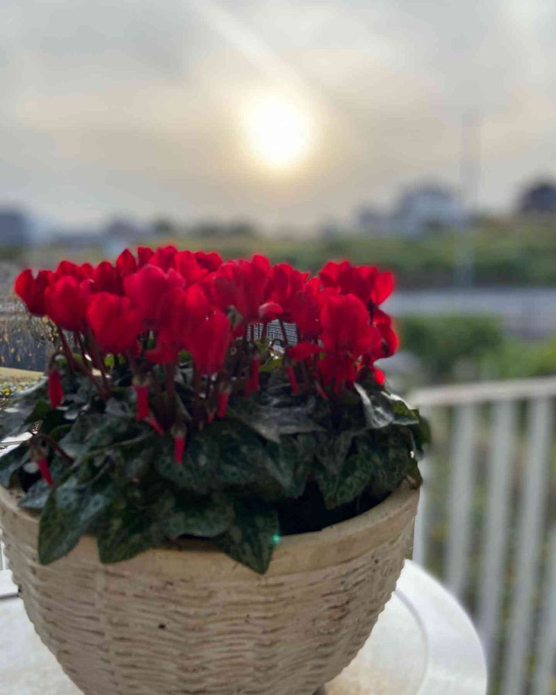 鉢カバーとてもいい感じですか‼️シクラメンの赤が引き立ちますね‼️🍀❤️🍀♥️❤️🍀