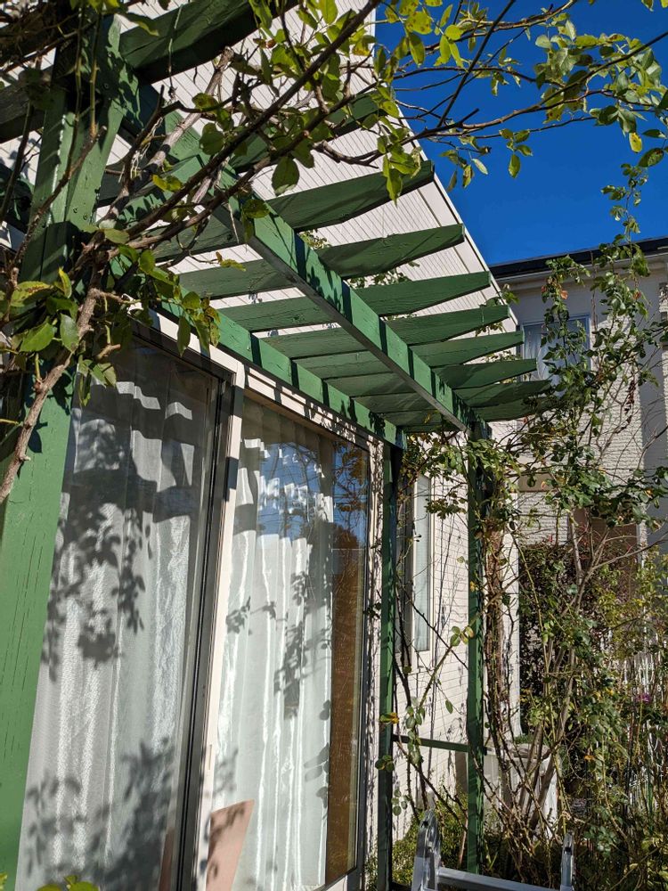 暖かいうちに自作パーゴラのペンキ塗り直しを済ませました。このところ暖かい日が多いのですが、12月はグンと気温が下がるみたいです。