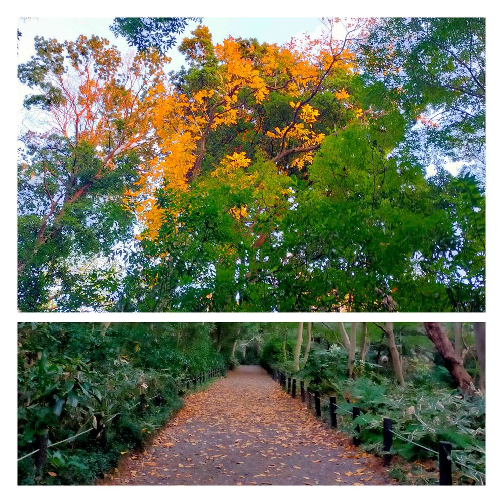 集中的に黄色い落ち葉→見上げるとムクロジ😍