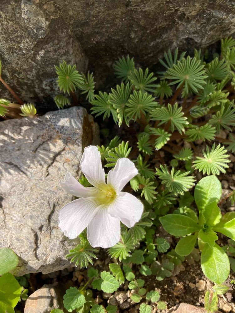 オキザリス孔雀の舞は、鉢植えだとなかなか上手く育たないので(多分私の水やりすぎ)今は地植えで放置状態ですが、今年初めて花を見ました。