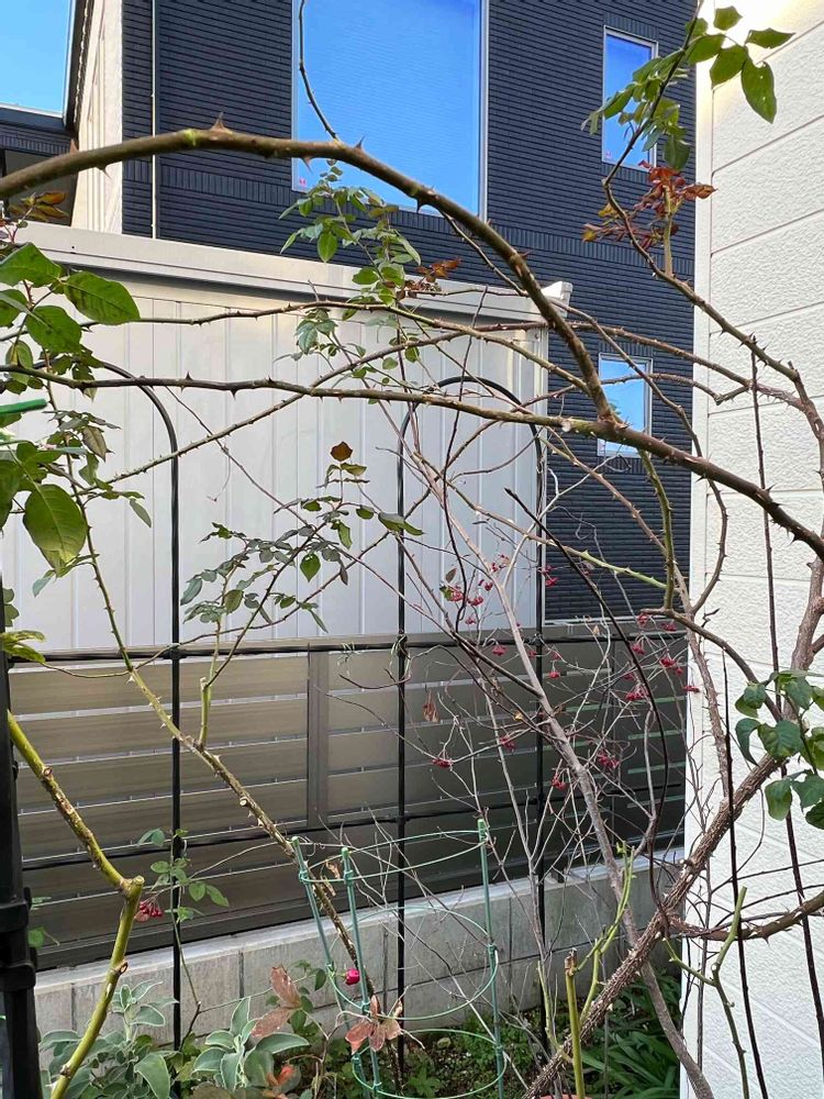 小春日和のポカポカ陽気が続きバラの冬越し準備が進みませんが、トゲトゲ大魔王のラデュレの葉落としと枝抜きを済ませました。