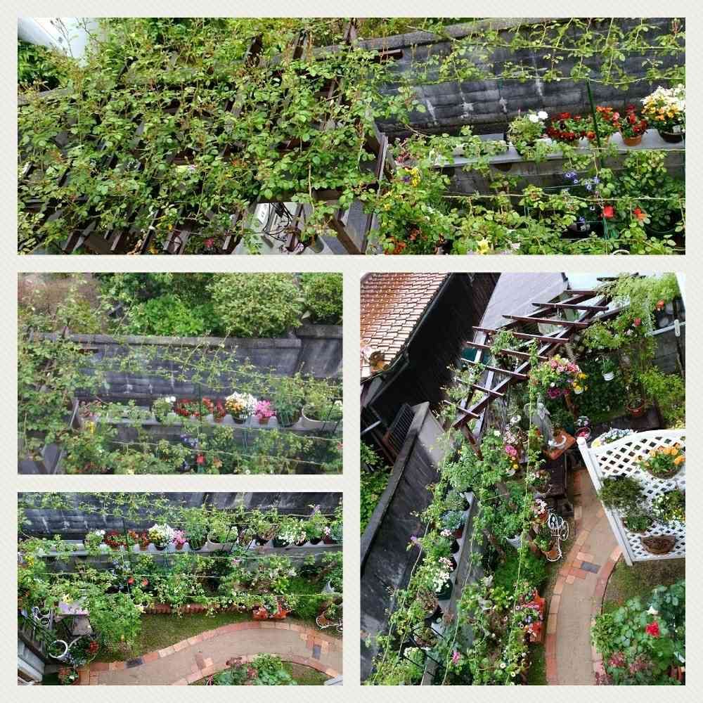 我が家は路地通りにあり、120cmの地上げをして周りをコンクリートで固めさらに100cmのブロック塀を四方に立ち上げたので、ちょっとした秘密の花園風なのです。