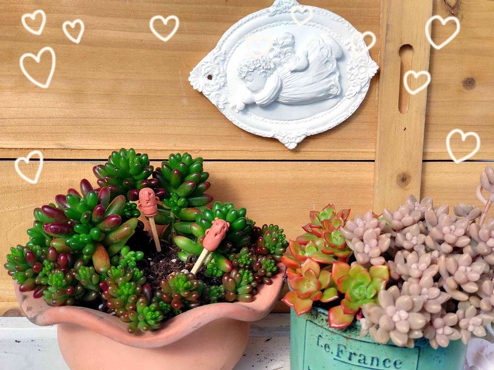 セダム属のラブロティンクタムさんとレッドベリーさんに同居してもらいました~❣️大きさが違うけど形はそっくりな子たちがなんか好きです(スタンダードプードルとトイプードルみたいなꉂ(´꒳`♡)笑)