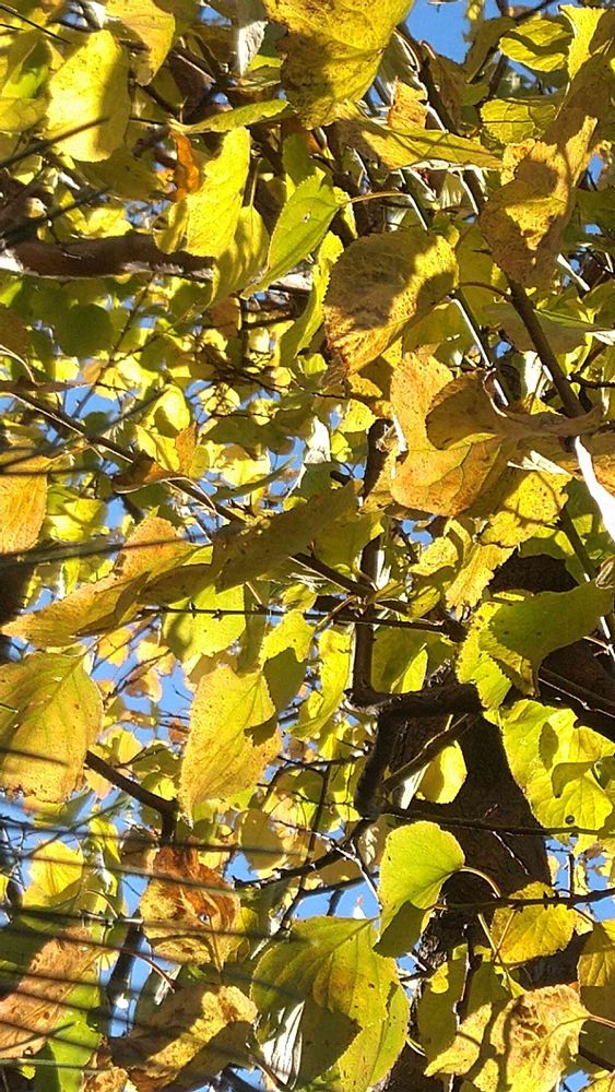 アンズの葉が、こんなに黄色に色付いたのは初めてかも…