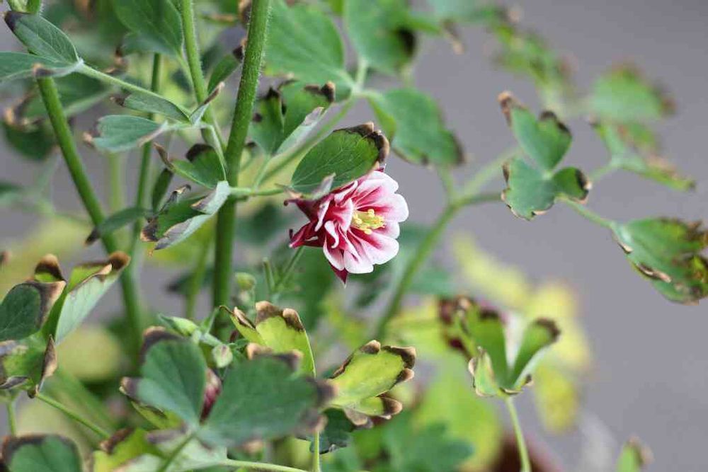 オダマキ ウィンキーダブル。葉っぱの縁が黒くなってしまいました😨