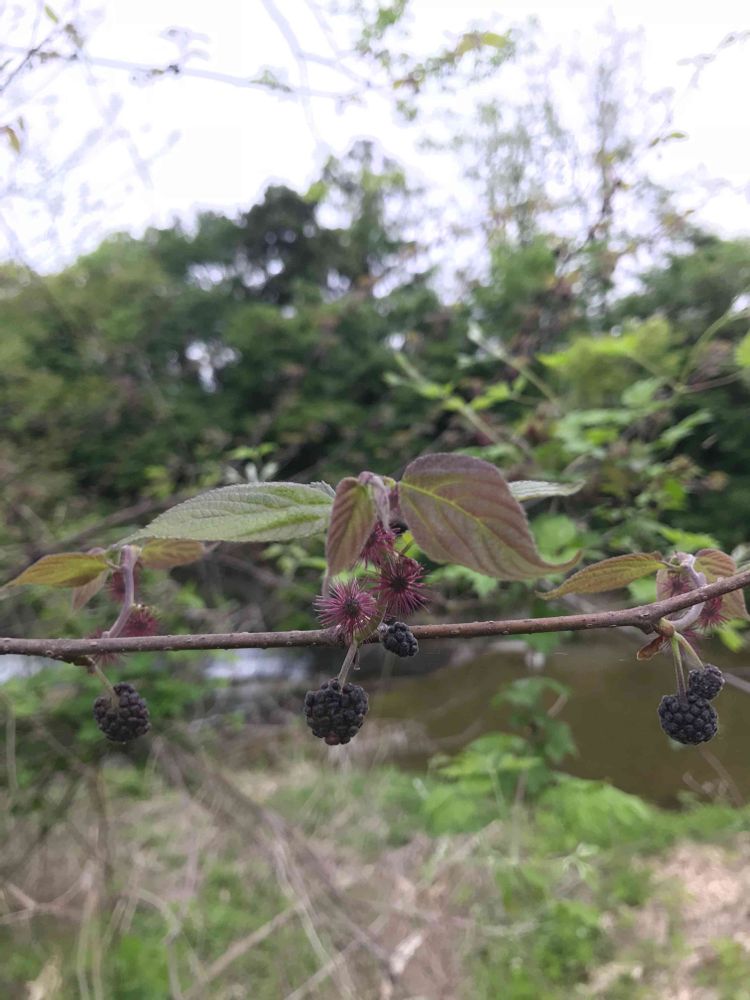実は実が付いているのでコウゾとしました。詳しくはこれだけではわかりません。ヒメコウゾとはもそっくりなのてます。ヒメコウゾは雌雄同株で実がつきます。コウゾは雌雄異株なので雌の木にしか実はつきません。花の時両方咲いていたらヒメコウゾになるので厳密には花の時期にわかります。春に両方の花が咲いていたらこの木はヒメコウゾということになります。(カジノキとヒメコウゾの雑種がコウゾです。) 説明下手ですみません。