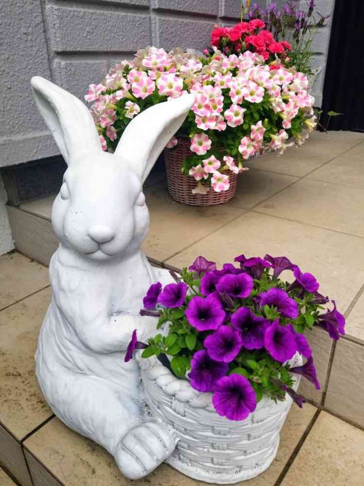深みがあって、白い🐇によく映えますね💖ペチュニア系は何色にするか毎年悩んでしまいます。