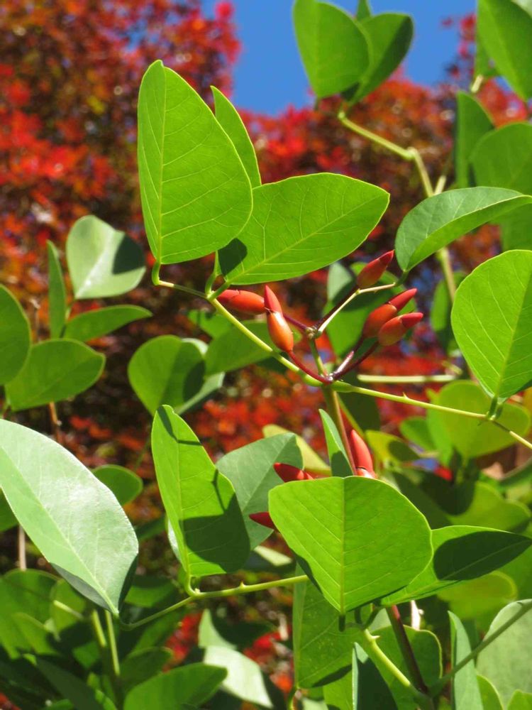 初夏から初秋にかけて房状に鮮やかな濃紅色の花が咲きます。