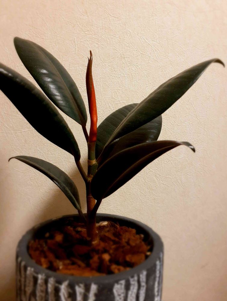 黒ゴムの新芽は赤トウガラシに変装して出てくるんです!黒い葉っぱの真ん中に真っ赤なトウガラシ、可愛いですよ🌶️💕
