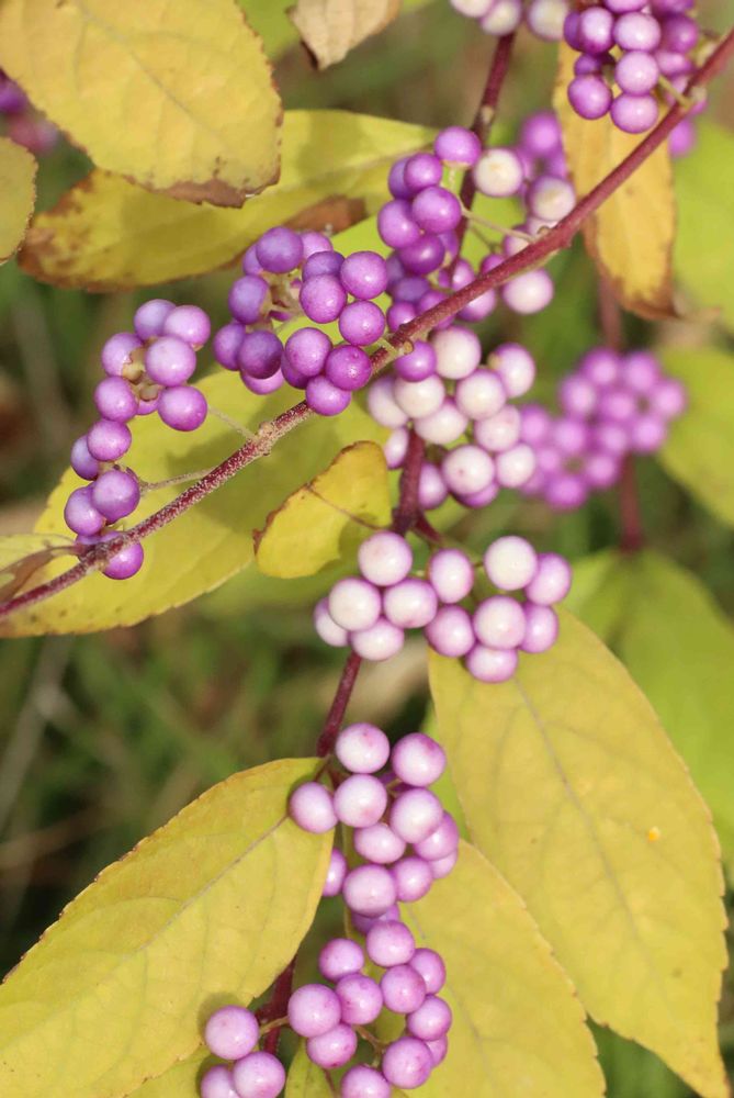 庭のコムラサキ 葉が黄葉し実の色も色褪せてきてしまいました。