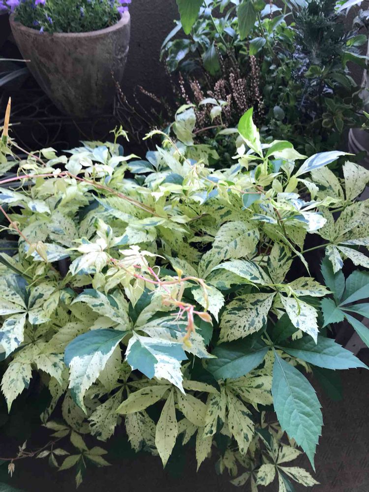 斑入りのヘンリーヅタです。秋になると紅葉して葉が落ちますが 春になると新芽が🌱 3年目です