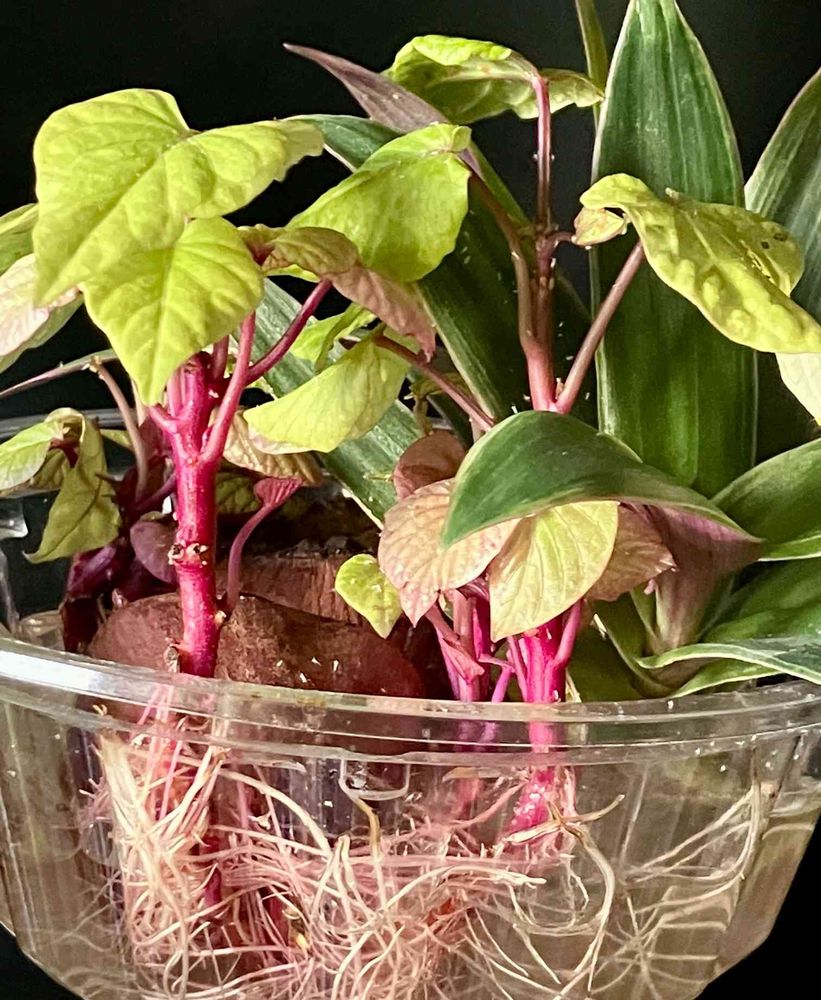 うちの🌱🌱🌱🍠は昨年9月に芽が出たので水に浸かりながら室内の