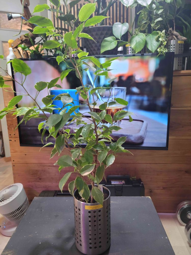 フィカスゴールデンキング細ーーい苗が大きくなったけどまだまだガリガリ君ですねぇ🎵