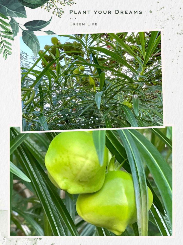 いつも見ているピンクや白の夾竹桃とは葉っぱも違うので。😂