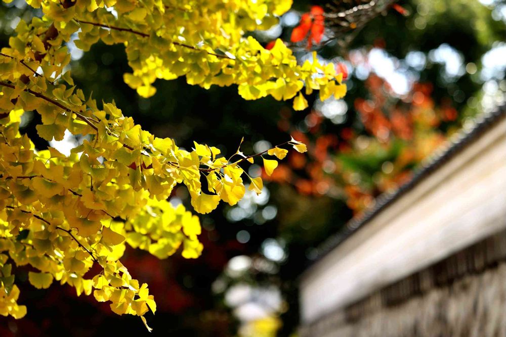 まだ、イチョウの葉が落葉せずに有るのね。1日に行った、醍醐寺近くは散っていたわ💦