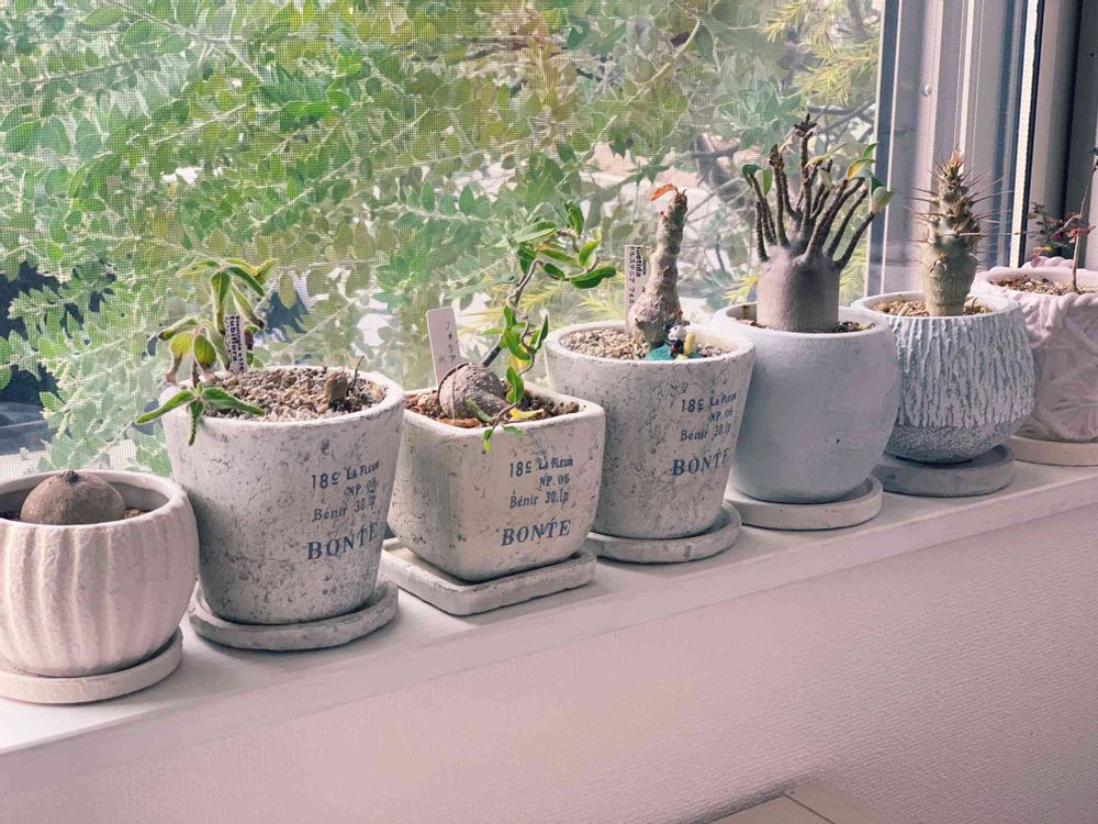 冬はこの窓枠で過ごすので、もう数も増やせないし、鉢増しもろくにできません笑