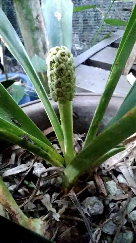 オモトの花芽?も淡いグリーンなんですね💚