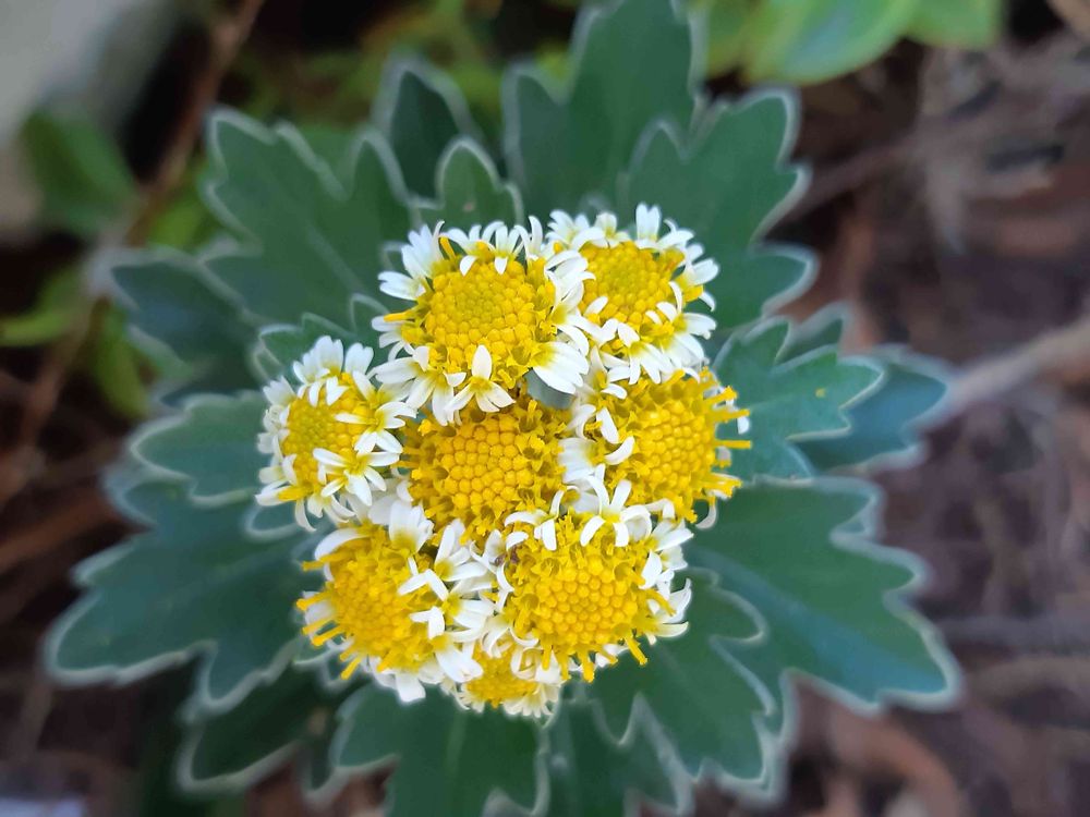 ハナイソギクです。栽培のキクとイソギクの交雑種だそうです😊白い花びらが付いて可愛らしいですよね♡♡♡🤗
