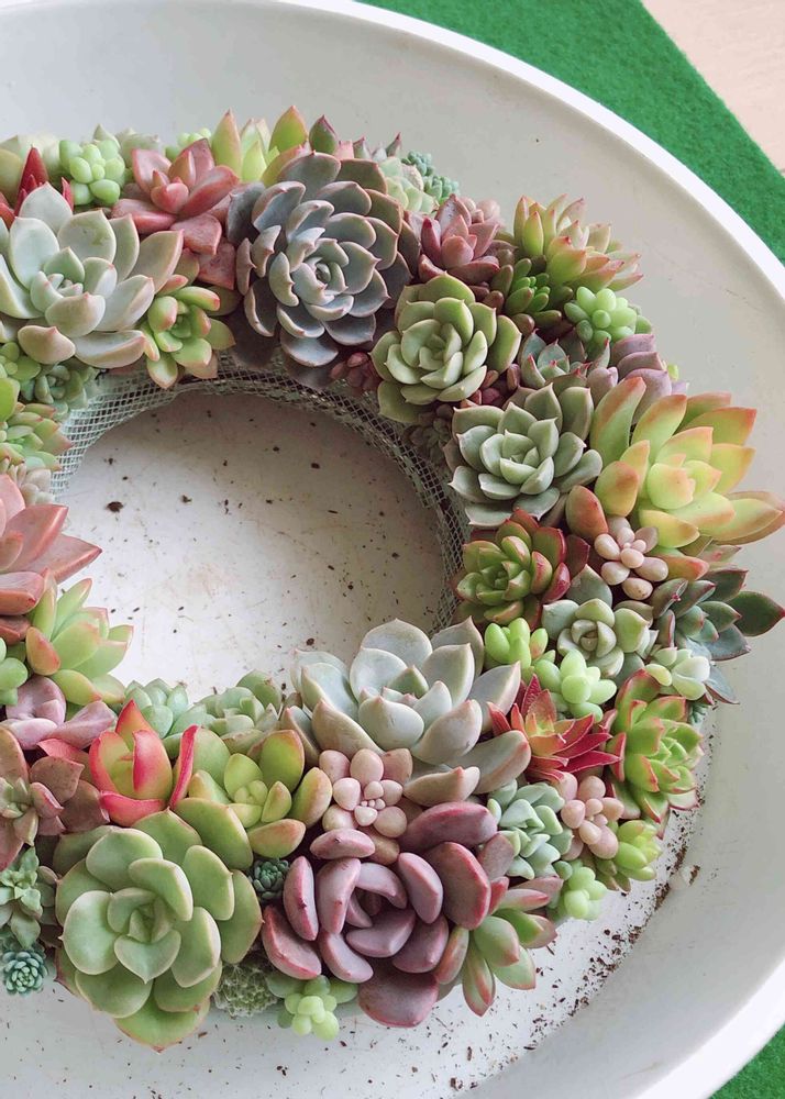 今日は仕事が半分休みだったので、葉挿しで増やした普及種でリース寄せしました🍀