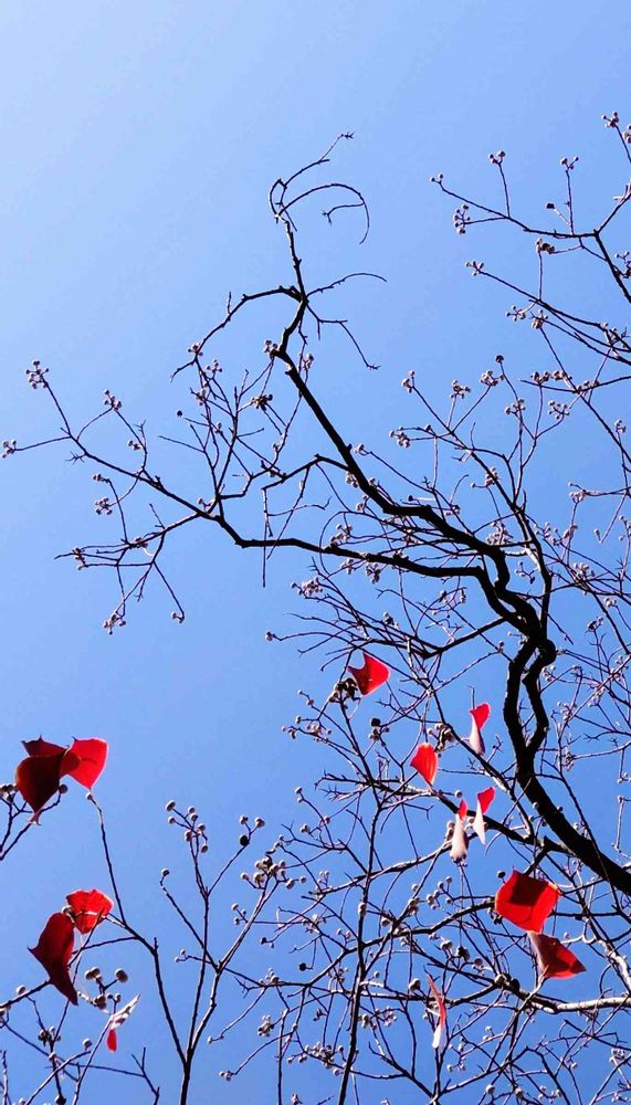 ほとんど落葉したナンキンハゼに白い実が残っています。