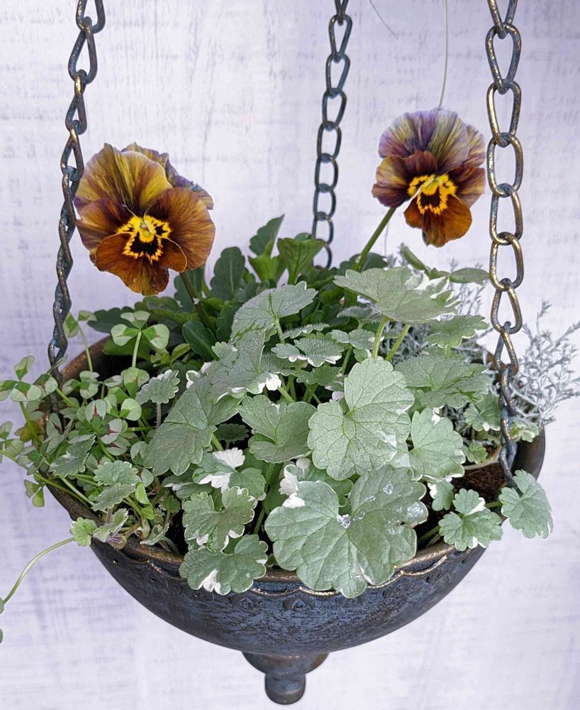 この吊り下げ鉢、上手に寄植えするととても素敵なんですが、私の技術ではなかなか😅