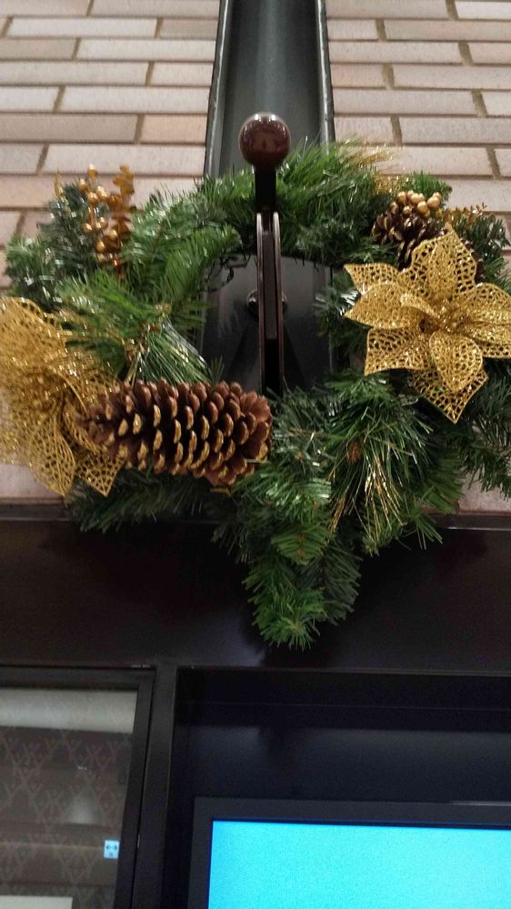 お昼休みに、「マツ」でできたクリスマス・リースをパチリ!📸⛄️🎄🤗🌞