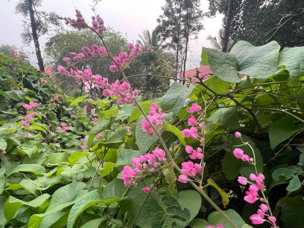 和名アサヒカズラ、別名チェーンオブラブ、またはクイーンネックレスとも呼ばれるようです。かわいいピンクの小さな花ですよね。💕