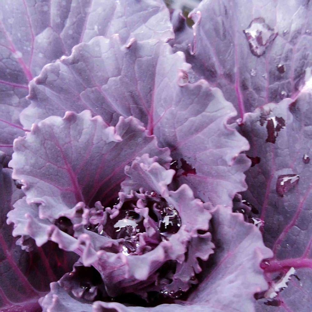 葉牡丹の水滴が陽に照らされキラキラ輝いてました💧🔆💜🍀💧🔆💜🍀