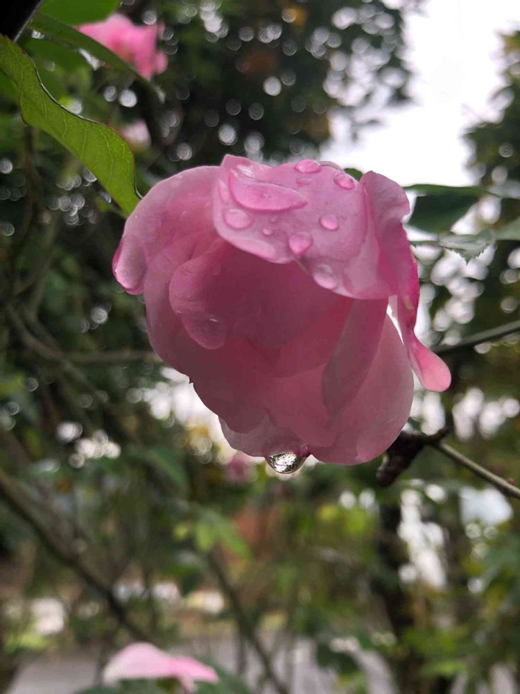 雫を纏って俯き気味に咲くバラも素敵ですね✨