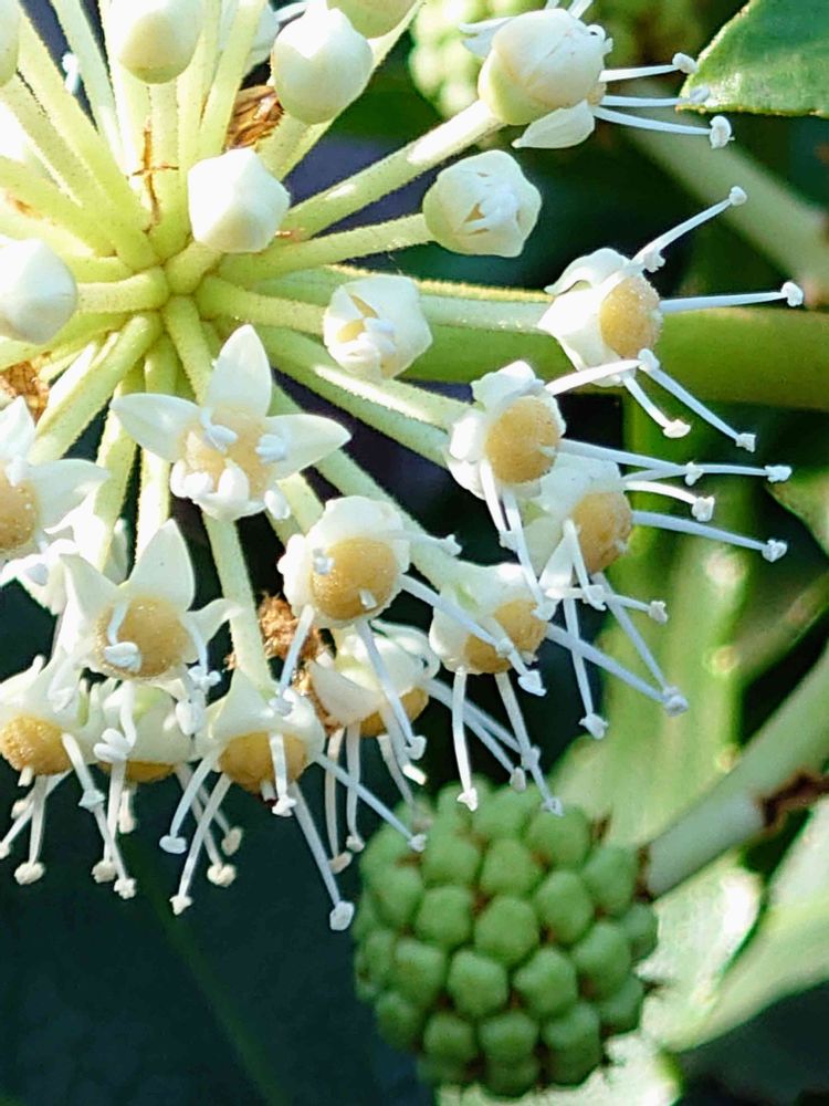 ヤツデの花が咲き始めました