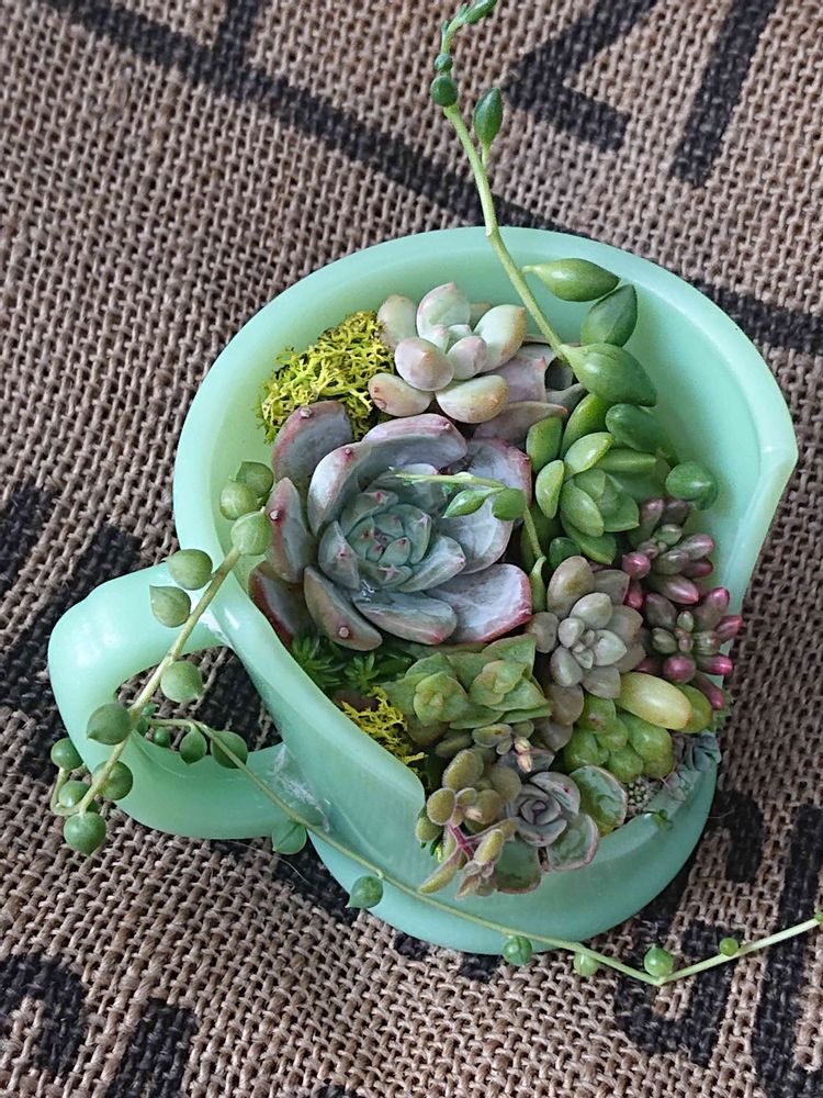 ファイヤーのジェード、カップ勿体無いけど、鉢として使うと、良い感じですねー^_^👍