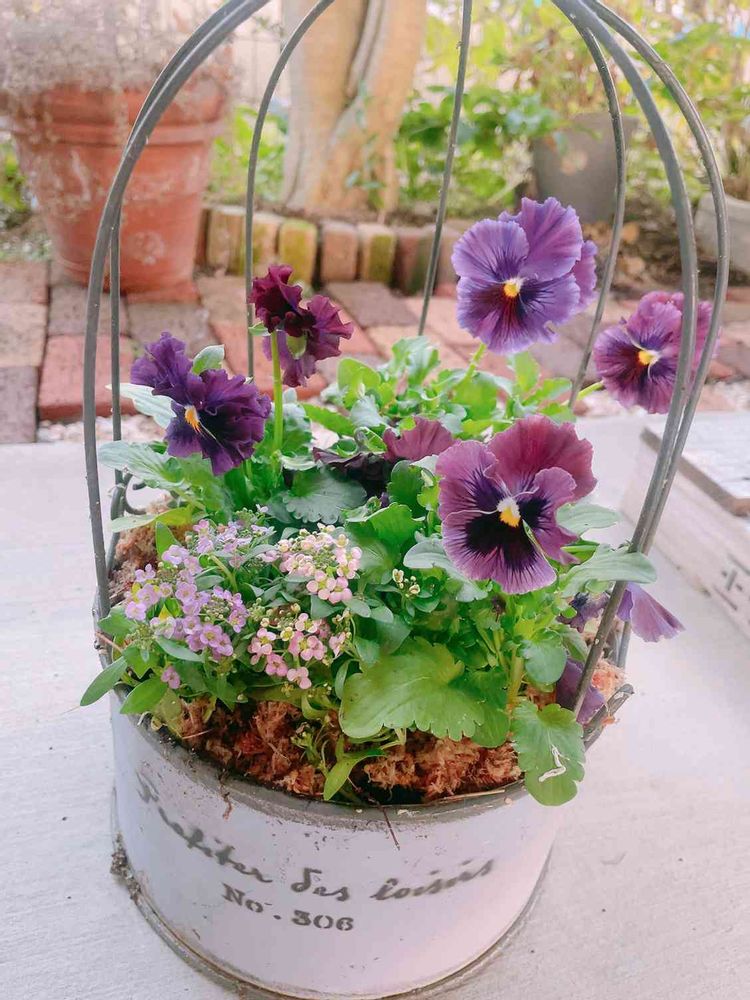 ブリキ鉢に寄せ植え♡
