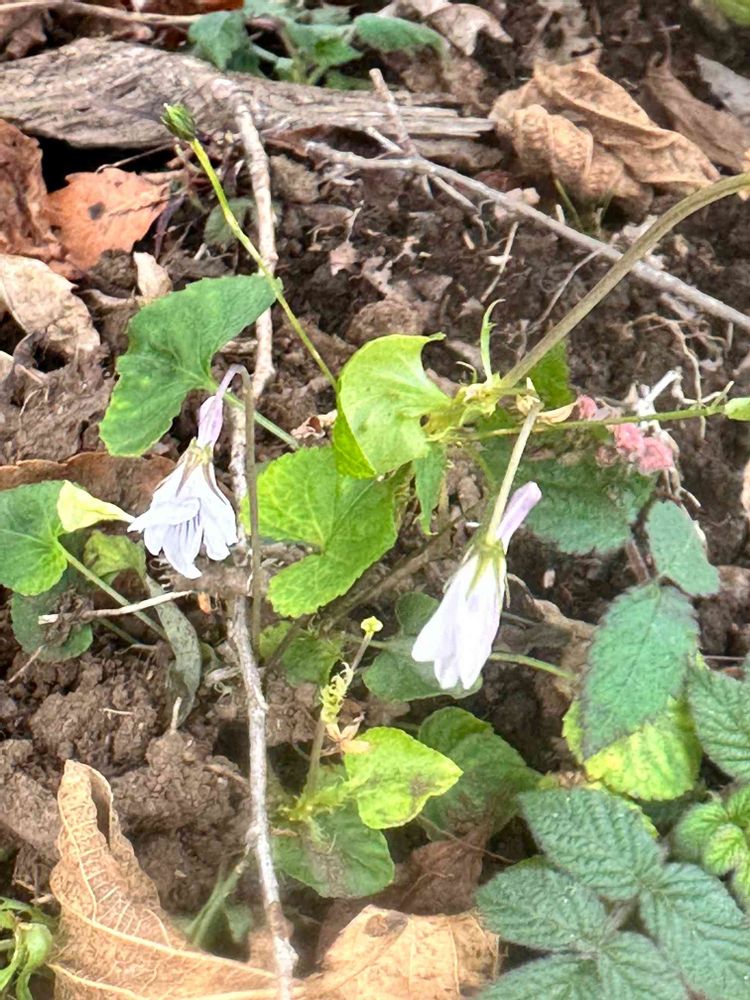 山野では一番遅くまで花開いてるもののひとつ、「ニョイスミレ(ツボスミレ)」じゃないかと思うけど…😊